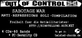„Out of Control“ geht es um praktische, solidarische Unterstützung: neben dem aus dem Verkauf der CD gewonnen Geld, das komplett in die Soliarbeit fließt, bietet der Sampler auch praktische Anleitungen & Tipps rund um das Thema Sicherheit im Internet. Und auch inhaltlich soll „Out of Control“ all jenen den Rücken stärken, die sich der (welcher Art auch immer) Kontrolle entziehen. Freiheit für die Angeklagten! Gemein(t) sind wir alle!