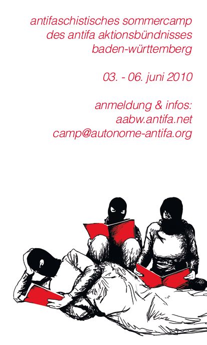 Zur Anmeldung wendest du dich entweder an eine lokale AABaWü-Gruppe oder schickst eine Mail an camp at autonome-antifa dot org.