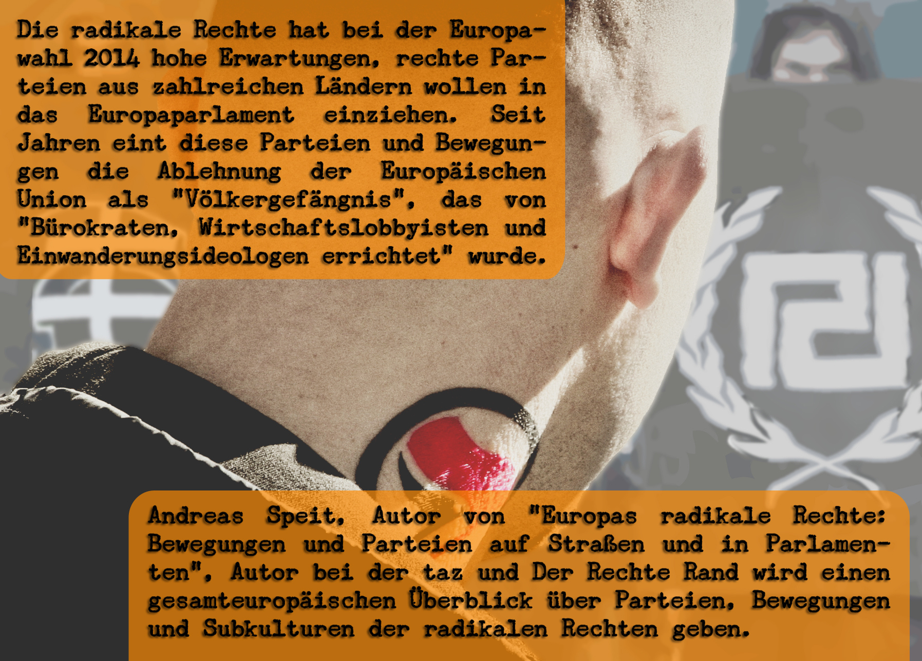 Die radikale Rechte hat hohe Erwartungen. Bei der Europawahl 2014 wollen verschiedene Parteien aus zahlreichen Ländern vom rechten Rand in das Europaparlament ziehen. Seit Jahren eint diese Parteien und Bewegungen zwischen Rechtspopulismus und Rechtsextremismus das Nein zur Europäischen Union. Ein Nein zur EU bedeutet aber kein Nein zur Europawahl. In Brüssel wollen sie sich gegen das „Völkergefängnis“, das „Bürokraten, Wirtschaftslobbyisten und Einwanderungsideologen errichtet“ hätten, einsetzen. Vom gesellschaftlichen rechten Rand bewegen sich auch subkulturelle Netzwerke in die Mitte der Politik.