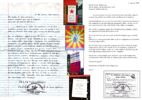 Mit diesem Brief schreiben wir Euch unsere aufrichtigsten Danksagungen, aber vorher möchten wir Euch herzlich und revolutionär grüßen.