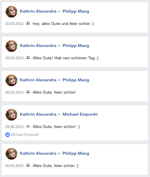 „Alles Gute, feier schön :-)“ Wie jedes Jahr am 20. März gratulierte Kathrin Kaltenhäuser ihrem Freund Philipp Mang auch 2015 zum Geburtstag. Sie waren schon seit 2011 auf Facebook befreundet und feierten oft zusammen im AT, der Diskothek ATlantis in Herbolzheim, der Stammdisko ihrer Clique. Für Jugendliche am Südrand der Ortenau gibt es auch heute noch wenig andere Orte, an denen sie der katholischen Enge ihrer Dörfer entfliehen und unter ihresgleichen feiern können. Zudem war Herbolzheim für Kathrin Kaltenhäuser gut zu erreichen, denn es liegt genau in der Mitte des Dreiecks aus ihrem damaligen Wohnort Rheinhausen-Oberhausen und den beiden Schulen, die sie zu dieser Zeit besuchte: Zuerst das Gymnasium Kenzingen und später die Heimschule St. Landolin in Ettenheim, wo sie 2012 das Abitur machte.
