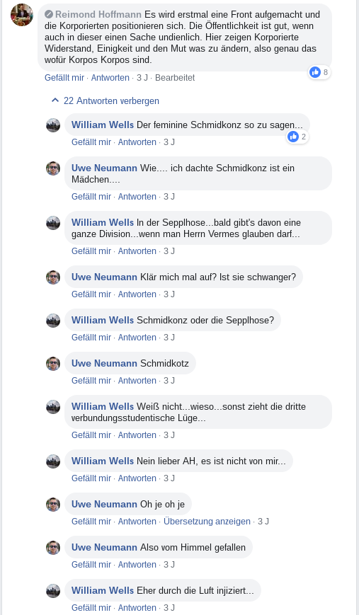 Manuel von Brauchitsch von der „Turnerschaft Markomanno-Albertia“ kommentierte anschließend die Schlappe der „Merzhausia“ unter den „Freiburger Korporierten“ im typischen Kasernenhofton seiner Militärfamilie: „Also meine s.v. Damen und Herren Bitte doch nocheinmal die Mitglieder dieser Gruppe zu überprüfen. Und an die Chargierten der Bünde ihre Mitglieder auf Geheimhaltung gegenüber Zivilisten einzuschwören. Peinlich genug, das dieses Schreiben an die zivile Öffentlichkeit gelangt ist und das Vorhaben damit empfindlich gestört wird, wirft dies ausserdem ein schlechtes Bild auf korporierte Studenten. Das galt es ja eigentlich hierdurch zu unterbinden und im Endeffekt aufzupolieren.“