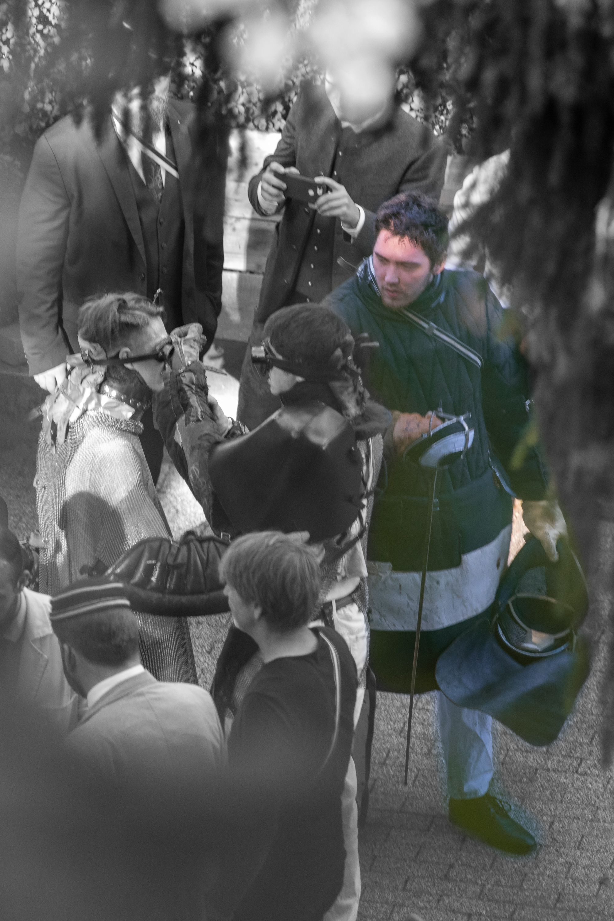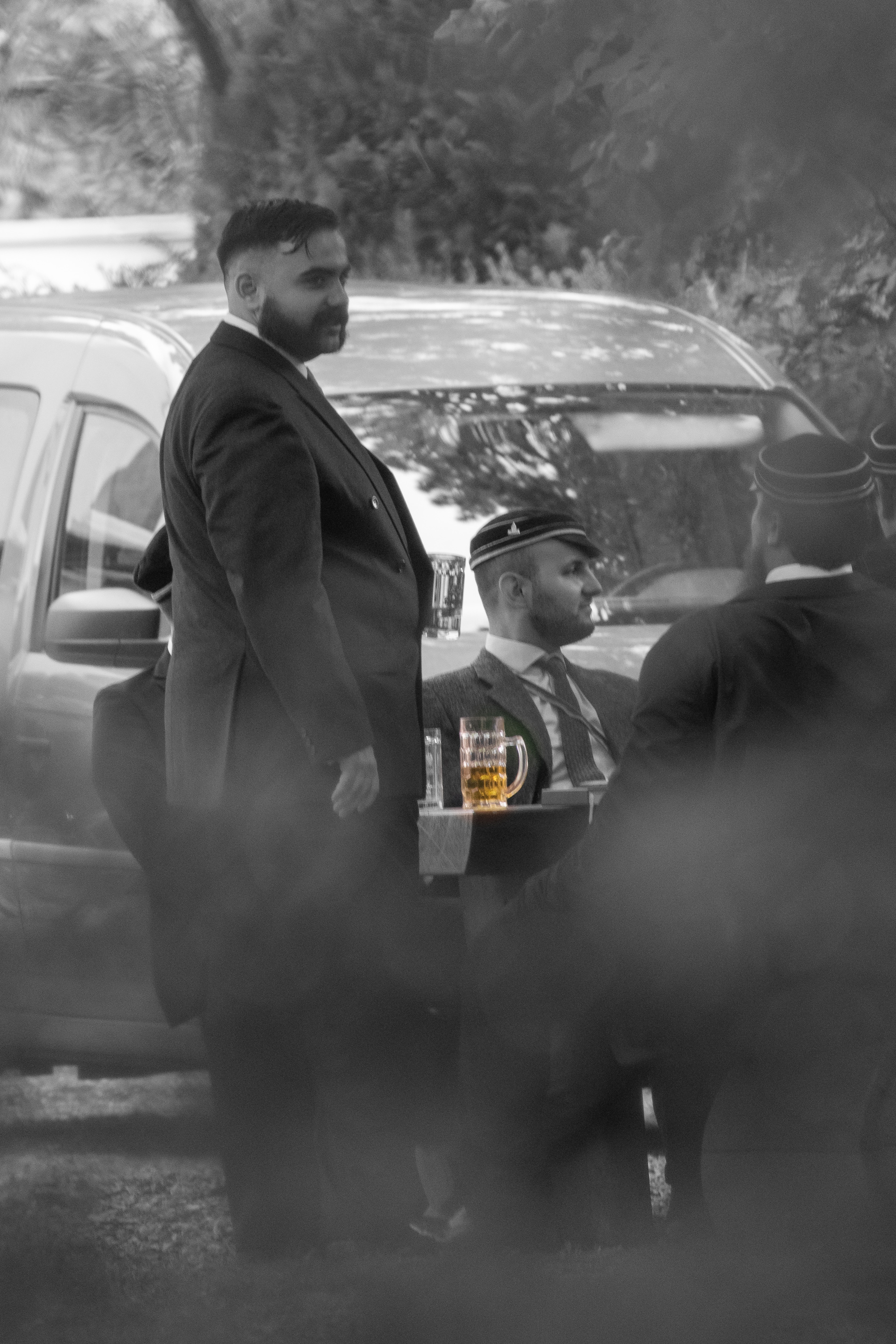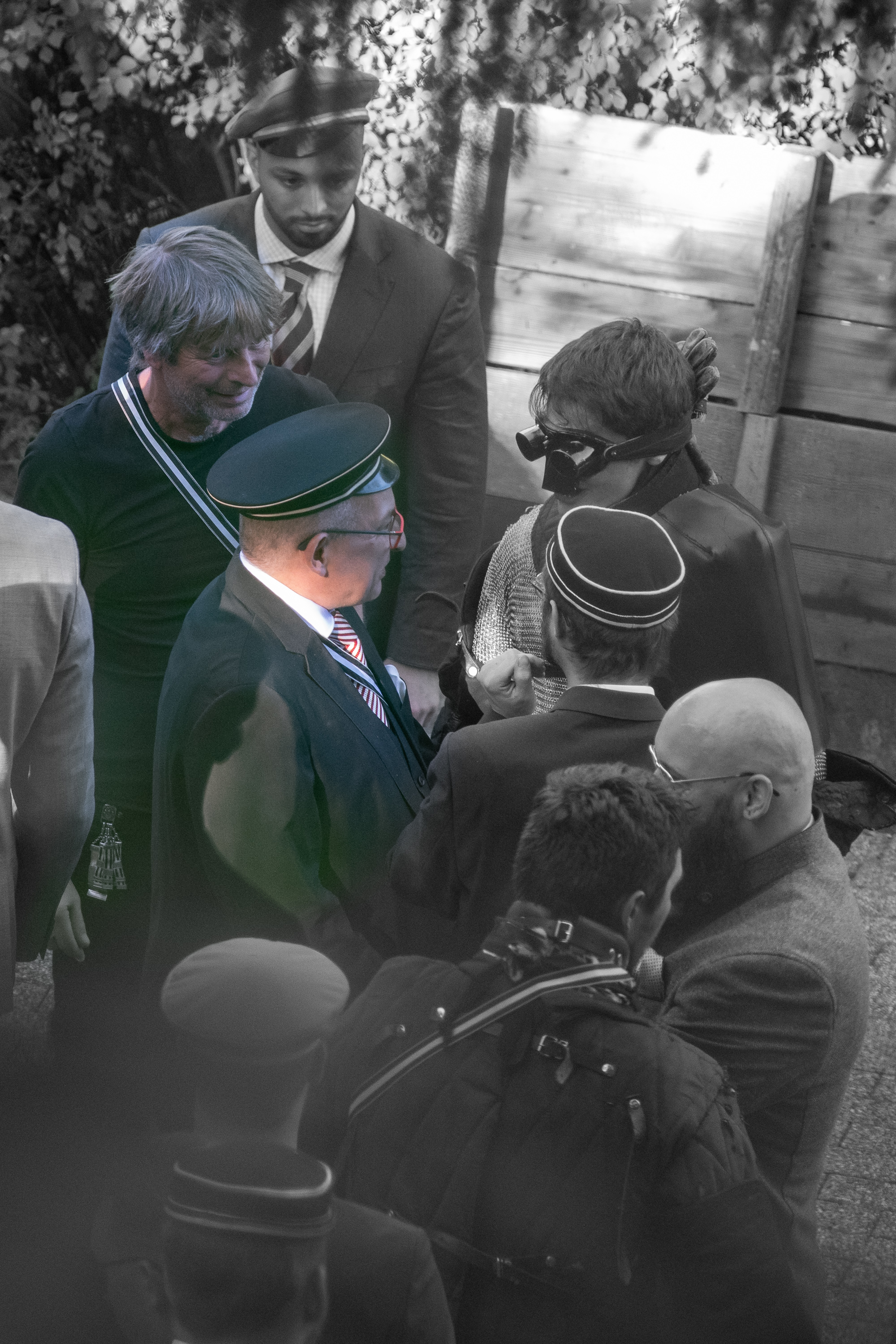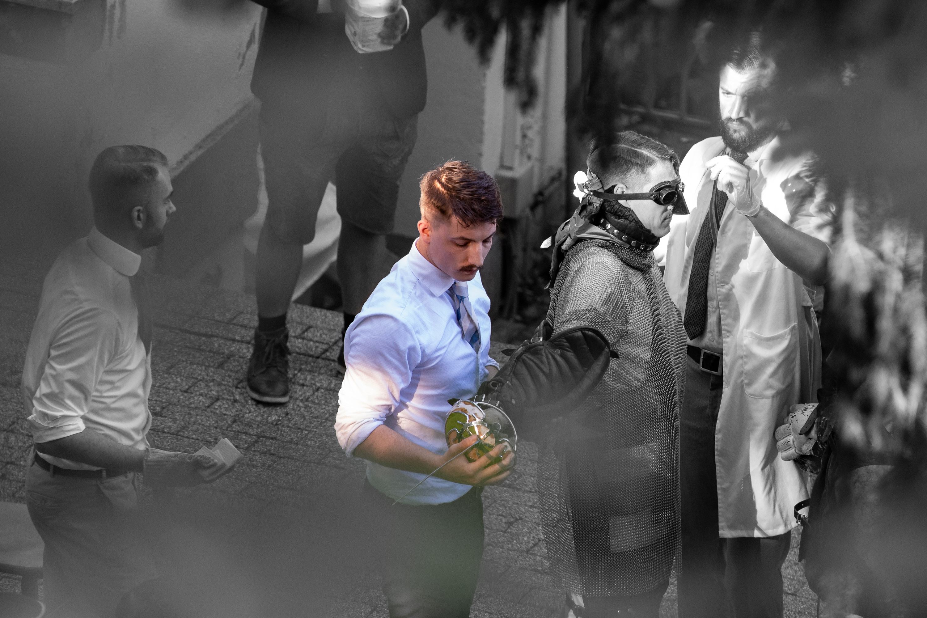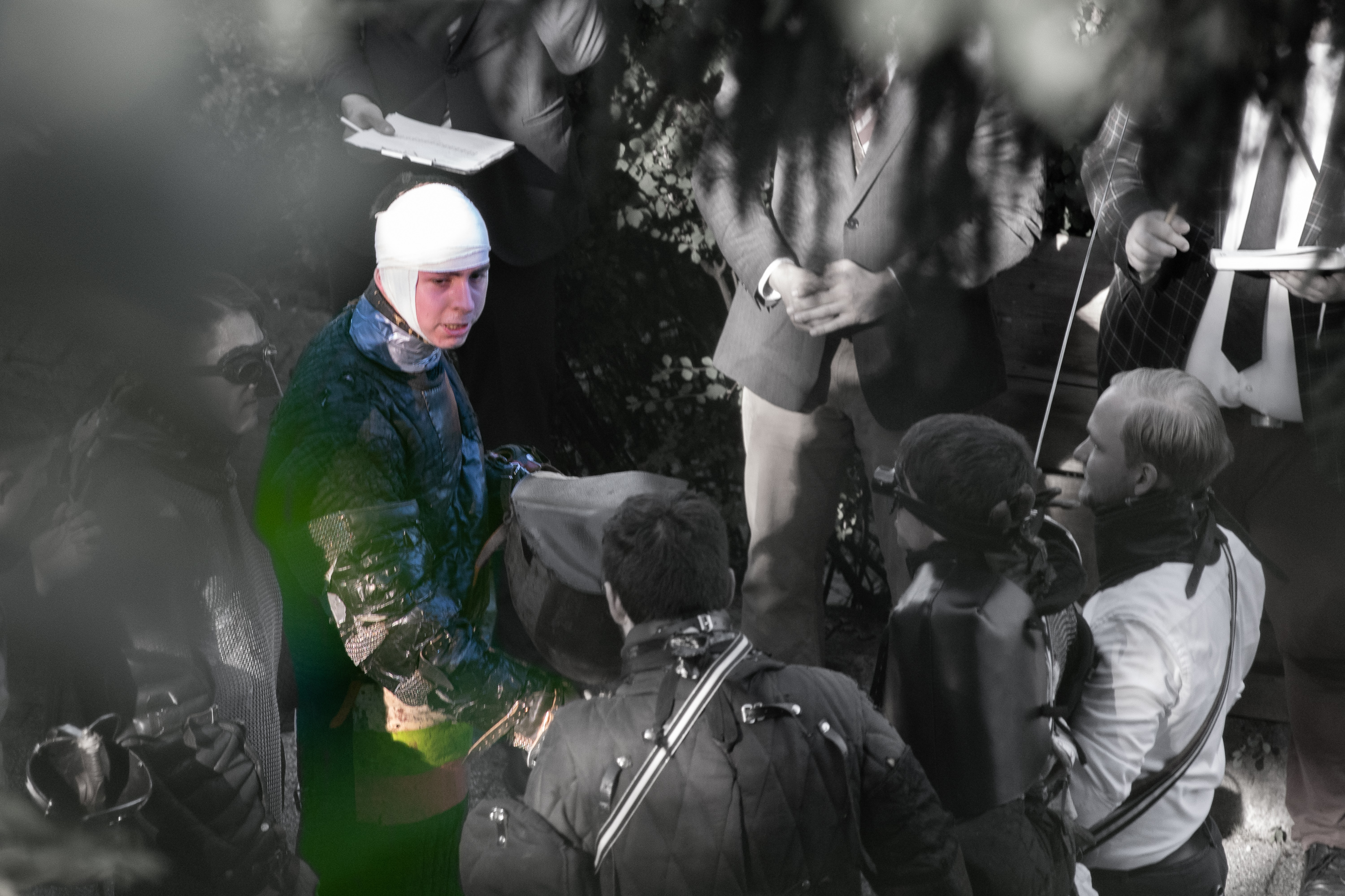 In dem „Münchener Schlägerpaukcomment“ werden die Beteiligten an der Mensur – selbstverständlich nur Männer – festgelegt: „Zur Mensur gehören zwei Paukanten, zwei Sekundanten, zwei Schleppfüxe, ein Unparteiischer, zwei Schriftführer, mindestens ein approbierter Arzt und je drei Burschen jeder beteiligten Verbindung.“ Darüber hinaus gilt eine „Mensur“ im Verbindungsmilieu als soziales Event, zu dem andere Korporierte eingeladen werden. Uns stellte der „Schlägerpaukcomment“ vor ungeahnte Schwierigkeiten, denn „Partien dürfen nur mit Einverständnis beider Paukanten und dann nur ohne Blitzlicht fotographiert werden“ und „nicht farbentragende Gäste dürfen auf Mensurtagen nicht fotographieren“.