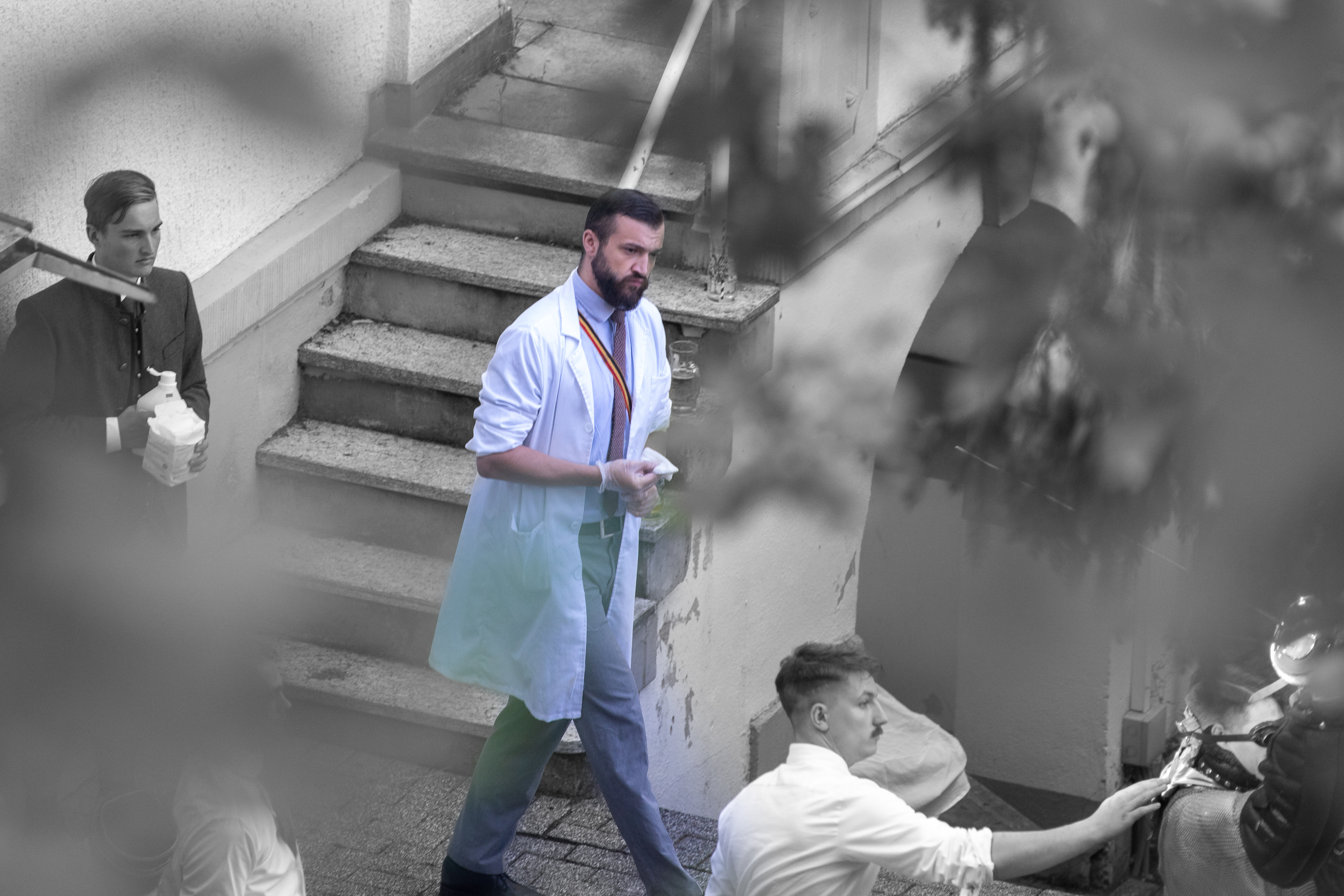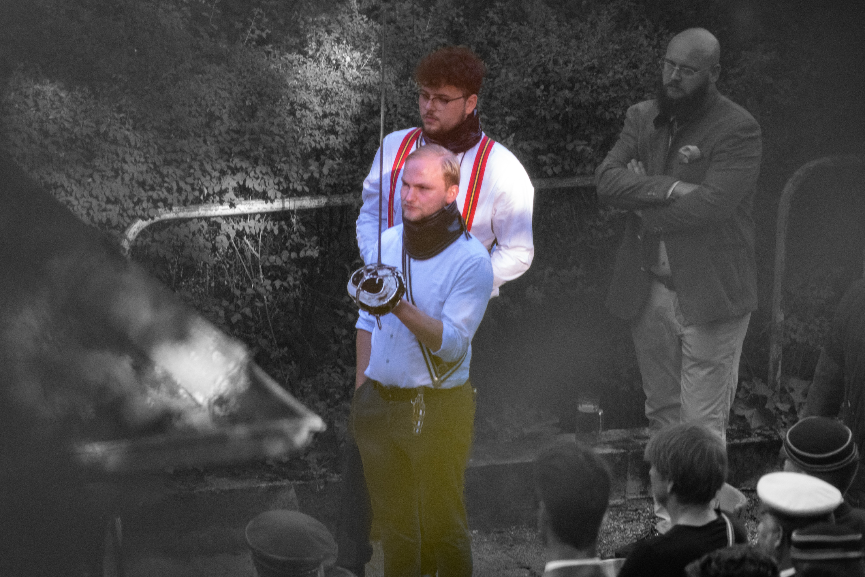 Kutscher war bei der Mensur am 8. Juli 2022 im Garten des Saxo-Silesenhauses anwesend und hatte eine besondere Rolle: Er war der sogenannte „Paukarzt“ auf Seiten der Saxo-Silesia.