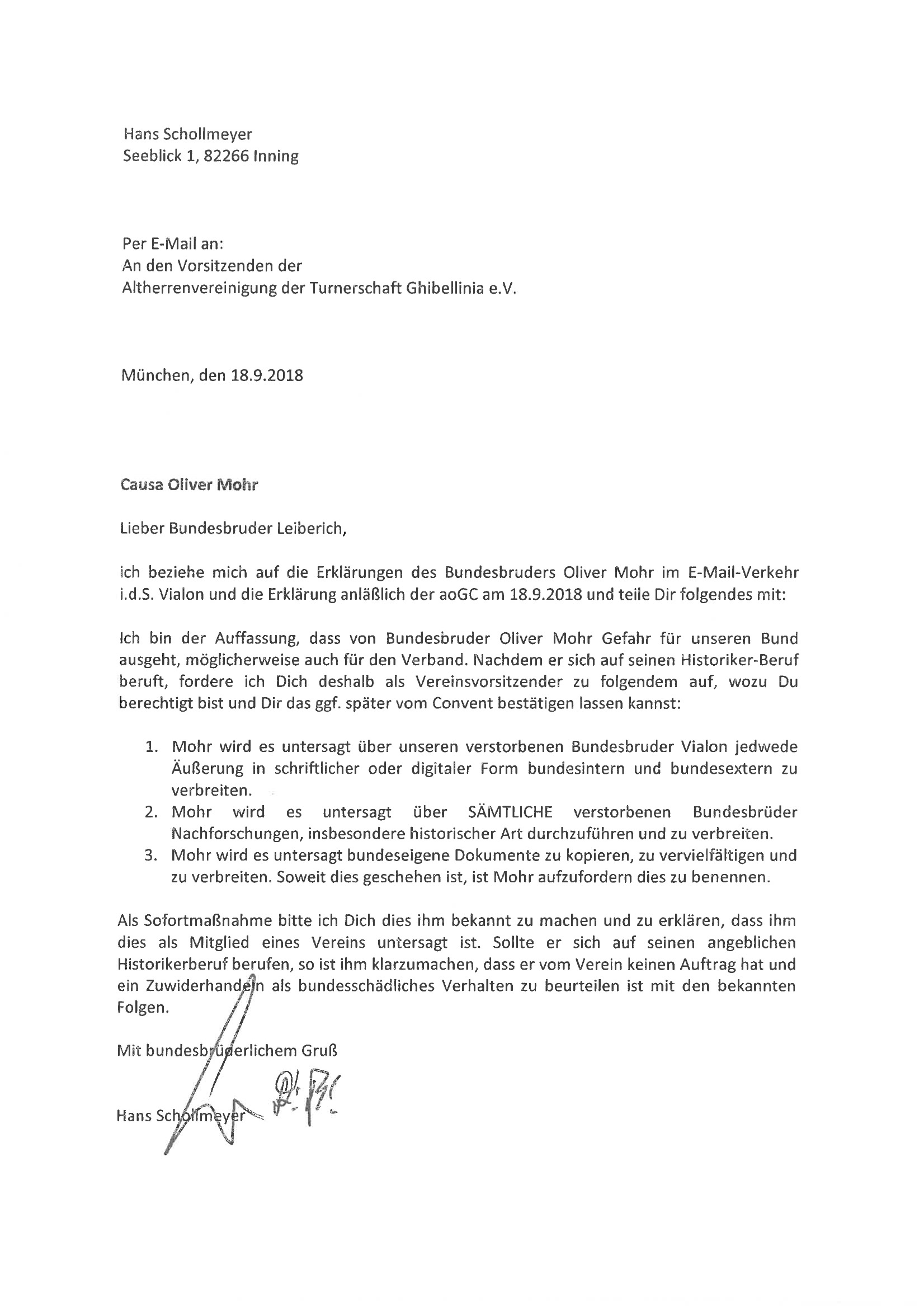 Hans spielte im Februar 2023 in Erlangen beim Ehrenhandel unter Korporierten eine tragische Rolle als Beweismittellieferant für die Strafverfolgungsbehörden. Von seiner lieben Turnerschaft Munichia Bayreuth kämpfte an diesem Tag als erster Fechter Kilian Chevalier, ein Mitglied des „CC-Rats“ des Coburger Convents. Der „CC-Rat“ ist ein Gremium, das unter anderem den Vorstand des AHCC unterstützen und in Öffentlichkeitsfragen kontrollieren soll. Das funktioniert aber schlecht, da Schollmeyer den „CC-Rat“ torpediert, wo er nur kann.