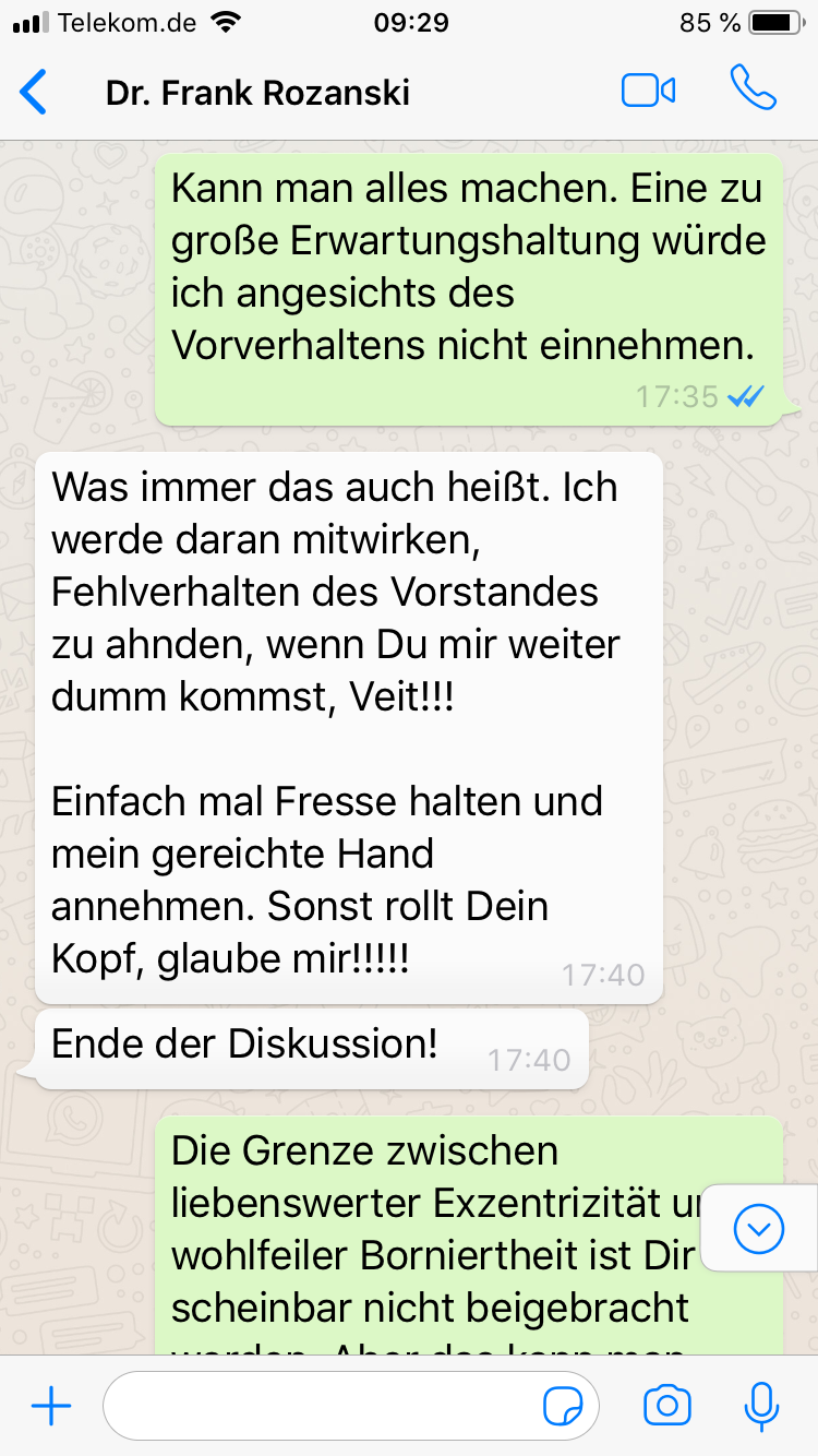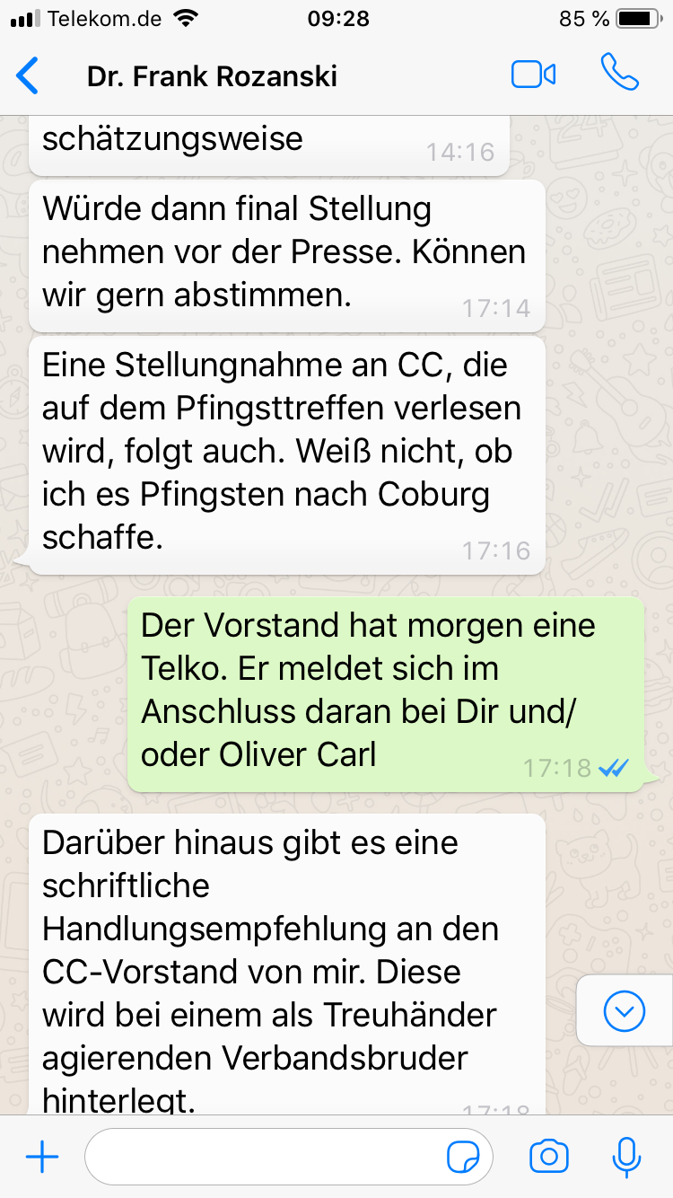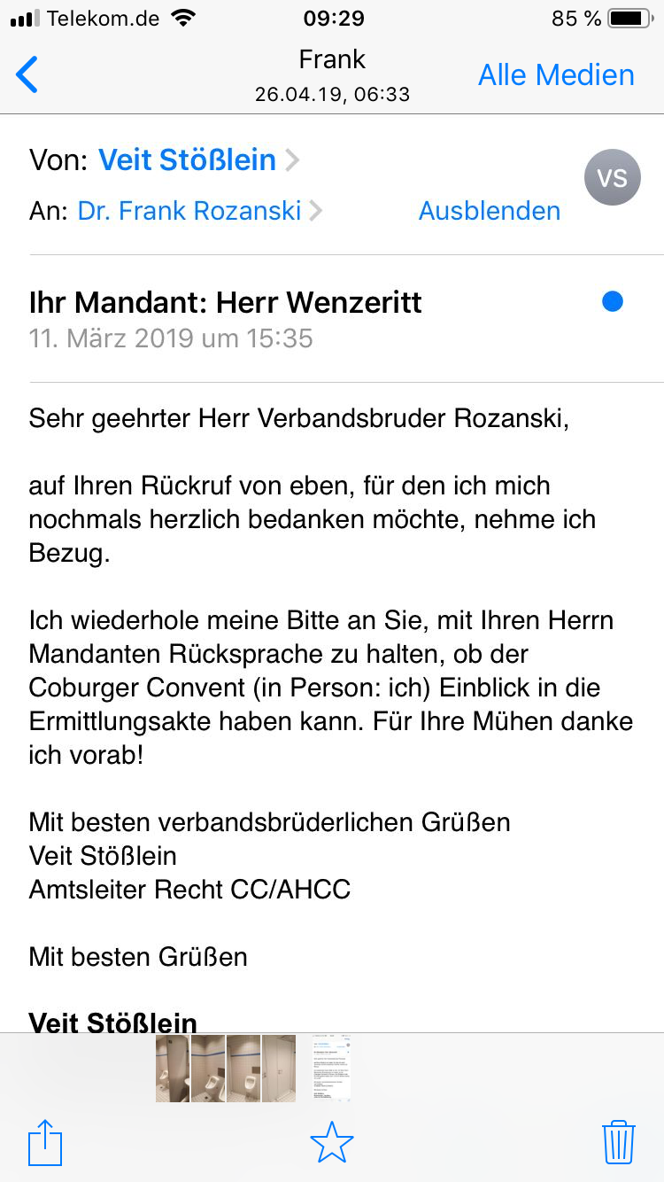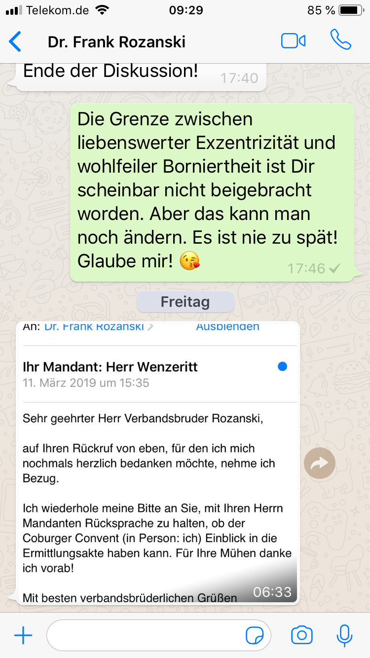 Scheiße. Mein Bundesbruder Albrecht hat zusammen mit Wöller Sitz im Ehrengericht, Albrecht ist Spezi von Rozanski.