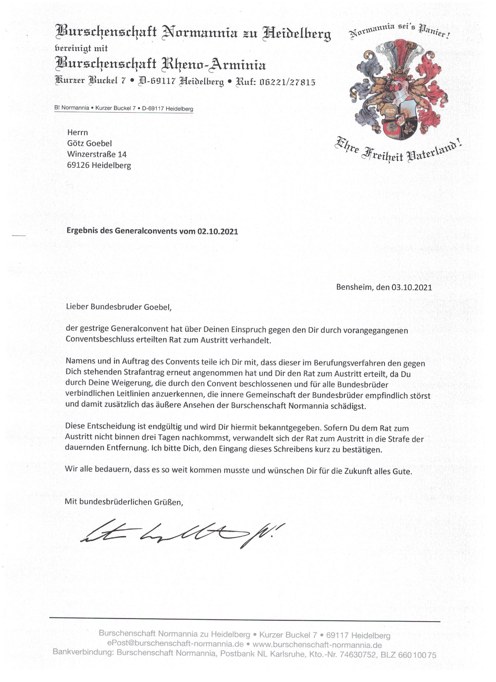 Bereits kurz nach dem Antisemitismus-Skandal am 28. August 2020 wurde nicht nur die „Aktivitas“ der Normannia von den „Alten Herren“ aufgelöst. Es gab auch innerhalb des „Altherrenvorstands“ des „Lebensbunds“ konkrete Pläne zur Selbstauflösung.