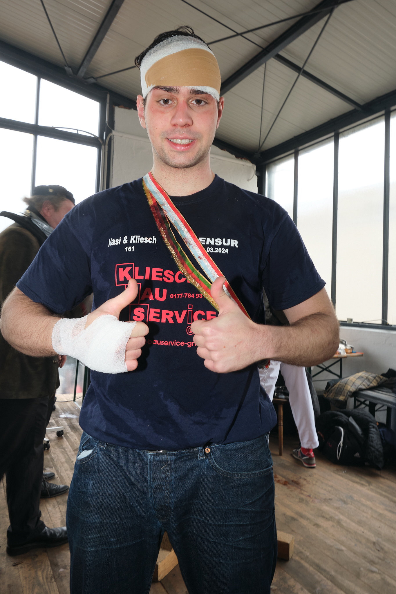 Der Mensurstandpunkt des CCs ist anscheinend nicht ernstzunehmen. Massives Vermucken bis zum Wegducken vor Hieben und Liegenbleiben stellen keinen Abfuhrgrund dar. Ein sauberer Stand scheint ein Fremdwort zu sein. Garniert wurde das Ganze durch übersteigerte Inszenierung. Nachdem Klieschs Sekundant die Annoncierung durchführte, wurde applaudiert und danach eine Rede!!!! gehalten. Man kann sich sowas nicht ausdenken. Während der Partien klingelten Handys, es wurde geredet und Zwischenrufe waren die Norm. Als Höhepunkt des Tages wurde mir mein Kopfcouleur aus dem Pauklokal gestohlen. Zu unseren Partien: Ansgar und ich ließen uns nicht verunsichern. Wir konnten mit sauberer Technik und starken Hieben die Partien dominieren. Im Anschluss kamen mehrere Verbandsbrüder auf uns zu und meinten wir hätten die schönsten Partien des Tages gezeigt. Wir haben die DB dort würdig repräsentiert, uns nicht auf das Niveau herabgelassen und souverän gefochten. Besonderen Dank gilt hierbei Vbr. Hanisch, welcher auf Klieschs Versuch, Ansgar und mich herauszukreiden als er merkte, dass seine Paukanten unterlegen waren, seine Fassung bewahrte.
