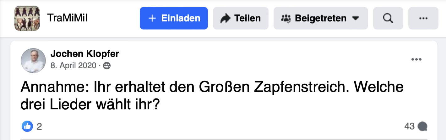 Am 14. September 2016 stellt Bengt Fuchs in „TraMiMil“ den „Herren Zooinsassen“ eine Frage. Der Begriff „Zoo“ war eine selbstironische Bezeichnung für das „alte TraMiZu“ und der Begriff hat sich zu dem „neuen TraMiZu“ bei Facebook tradiert.