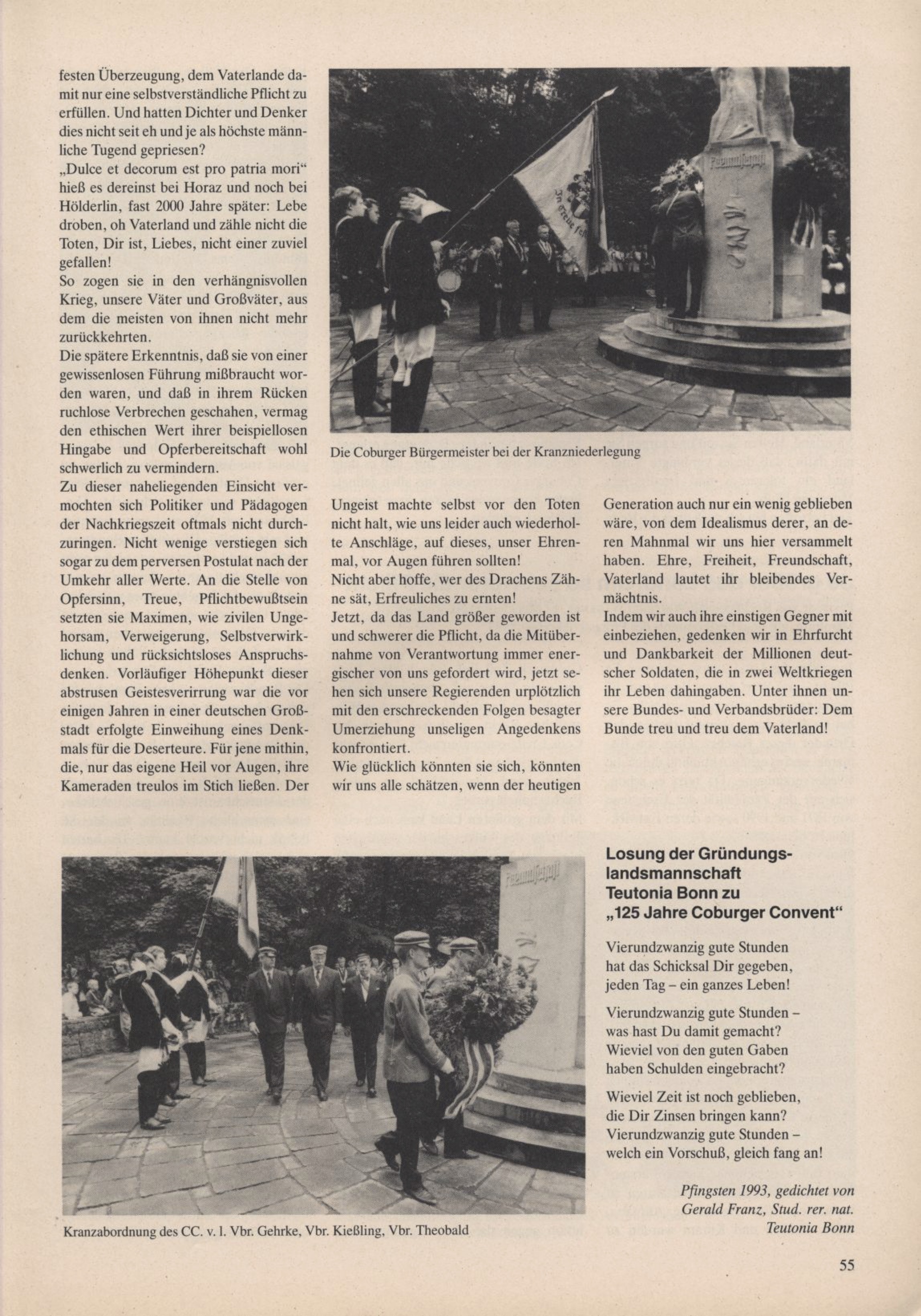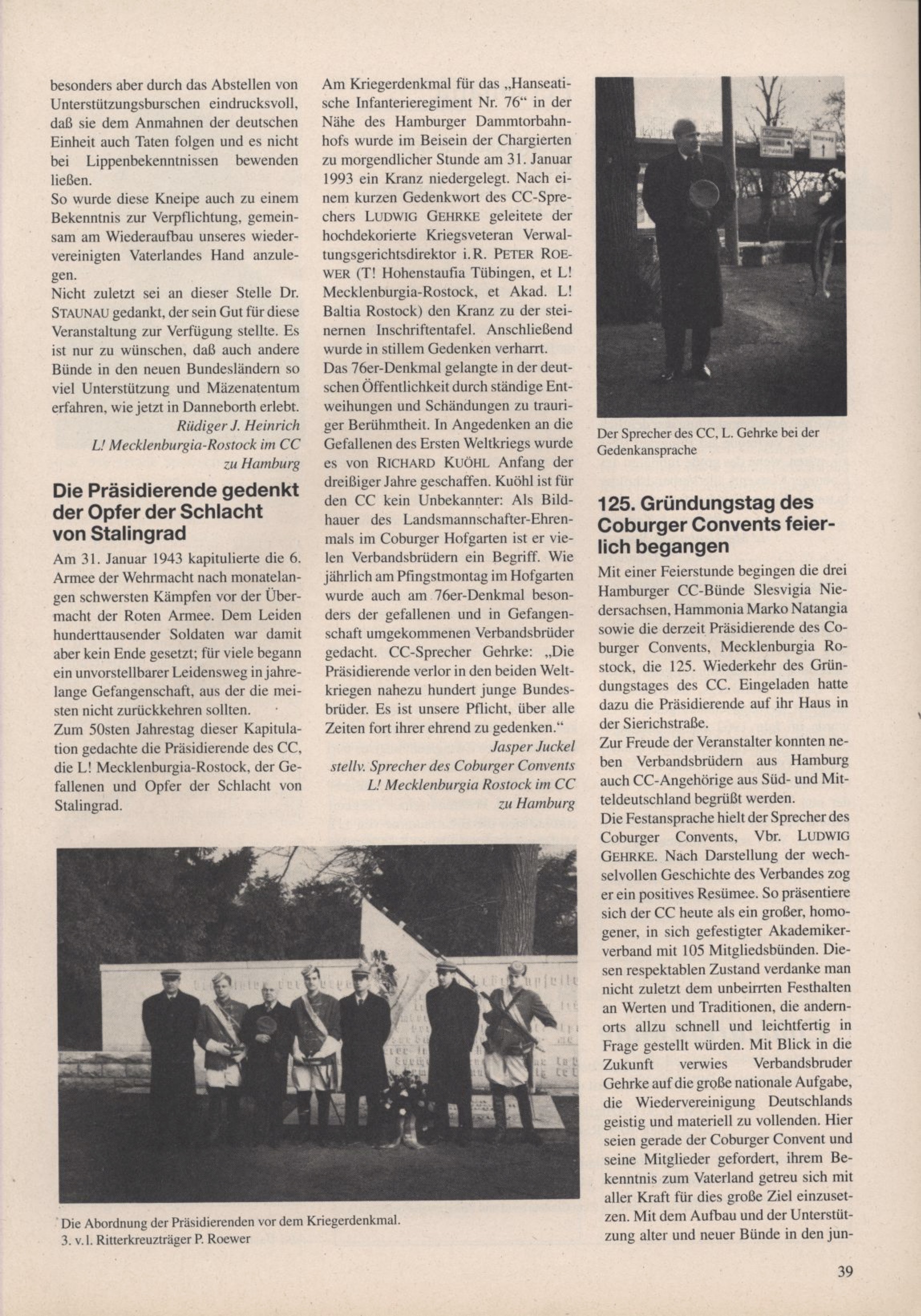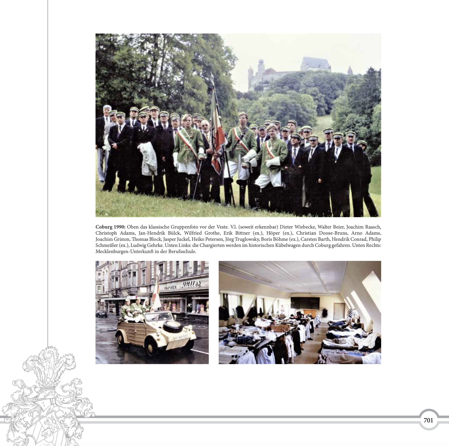Auf der Doppelseite 320/321 feiert die Mecklenburgia einige Fotos aus Coburg aus der guten, alten Zeit: Hunderte am Kriegerdenkmal im Hofgarten („Beim letzten Pfingstkongreß 1935 noch einmal Studentenromantik pur: Totengedenken am Ehrenmal bei Fackelschein“) und tausende Hitlergrüßer auf dem Coburger Marktplatz („Pfingstkongreß 1935: Gemeinsame Veranstaltung mit der Deutschen Turnerschaft auf dem Marktplatz“).