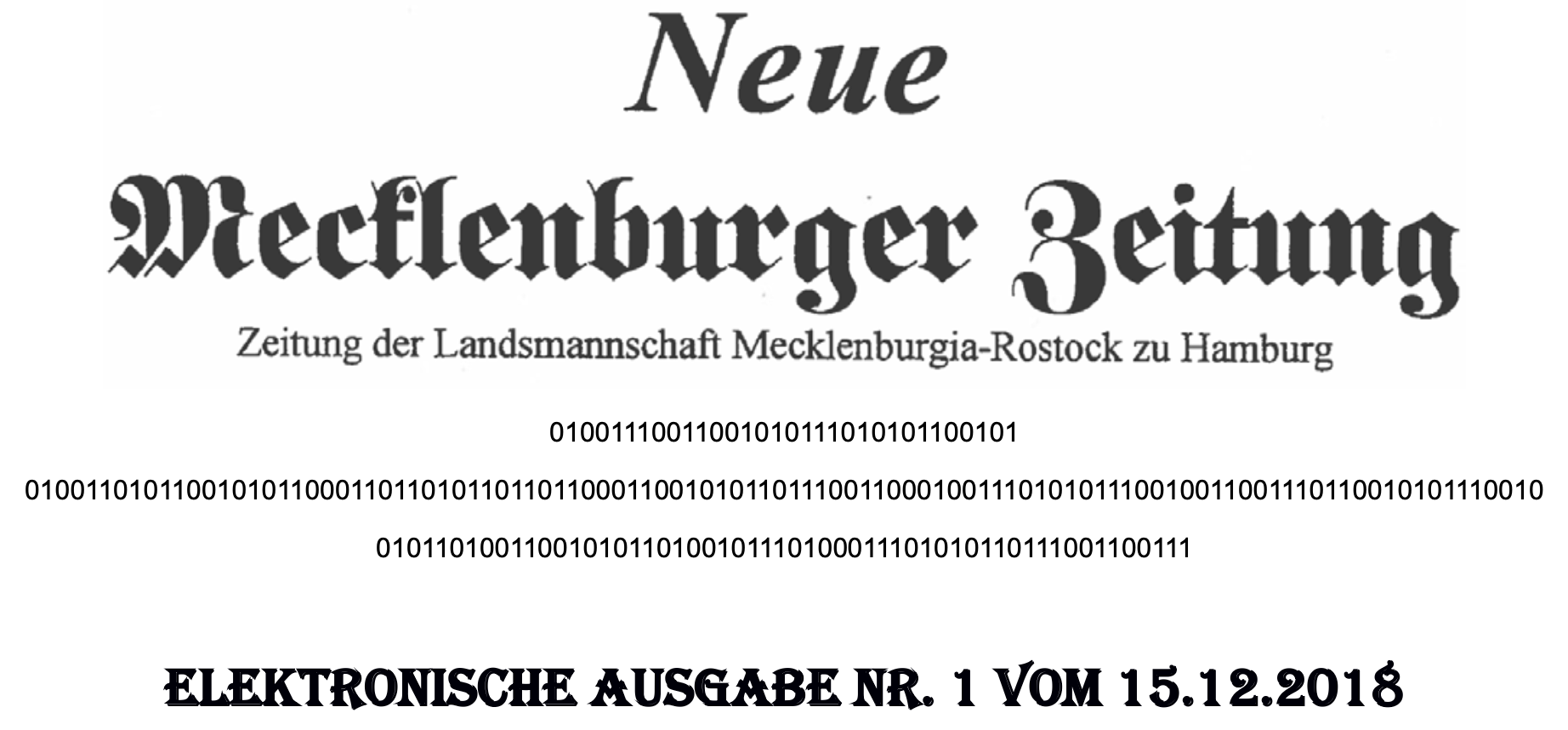 Am 15. Dezember 2018 erschien die „1. Elektronische Ausgabe“ der „Neuen Mecklenburger Zeitung“ (eNMZ) mit dem Untertitel: „Zeitung der Landsmannschaft Mecklenburgia-Rostock zu Hamburg“.