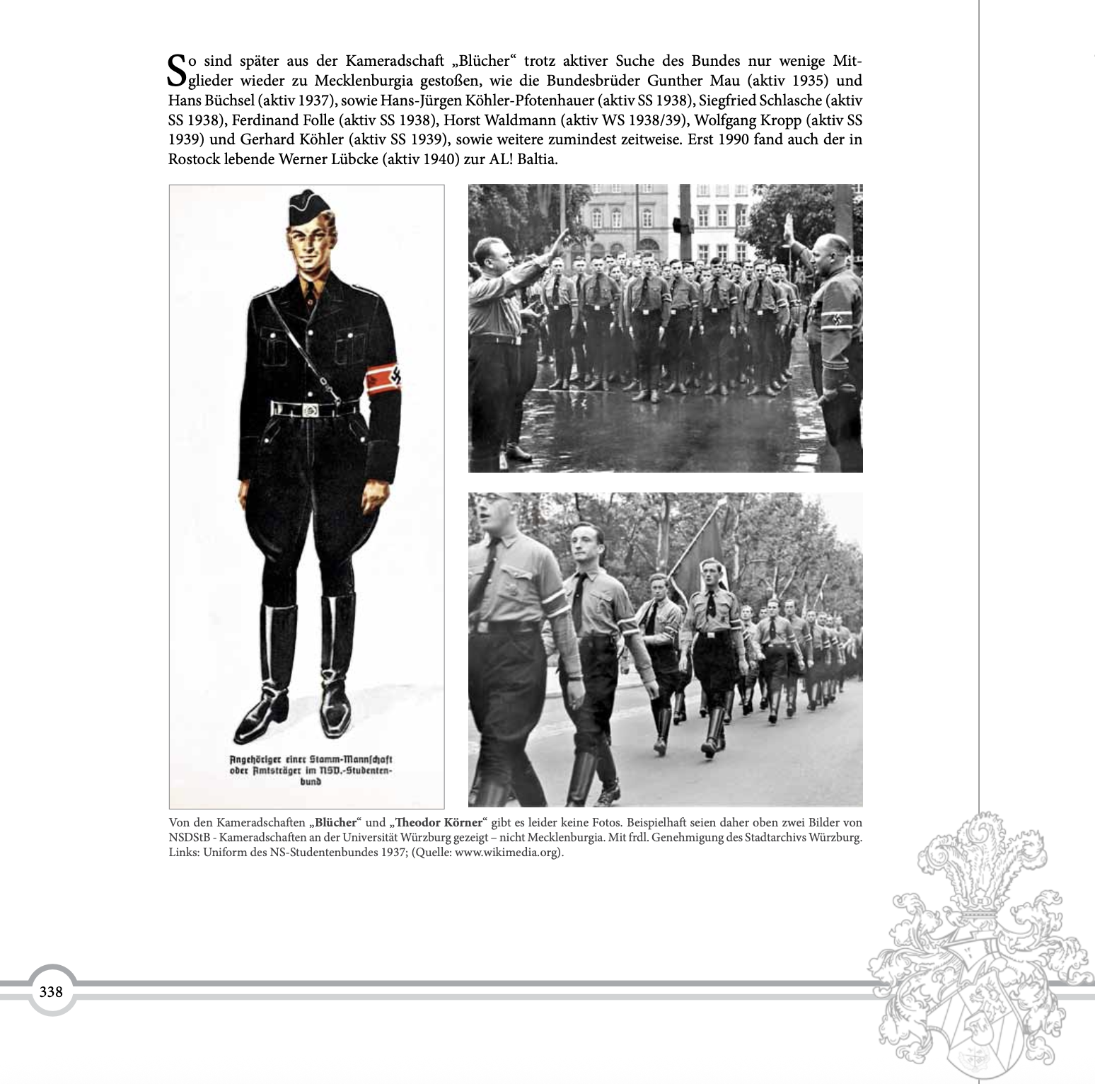 Danach gründeten beide Korporationen – die Landsmannschaft Mecklenburgia und die Turnerschaft Baltia – „Kameradschaften“ im Nationalsozialistischen Deutschen Studentenbundes (NSDStB), einer Gliederung der Nationalsozialistischen Deutschen Arbeiterpartei (NSDAP).