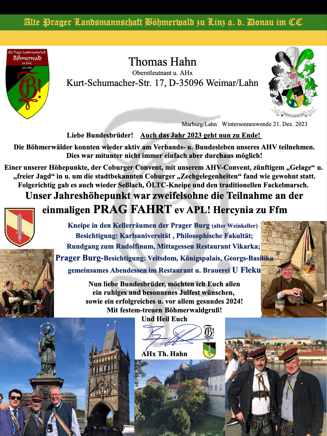 Liebe Bundesbrüder! Auch das Jahr 2023 geht nun zu Ende!