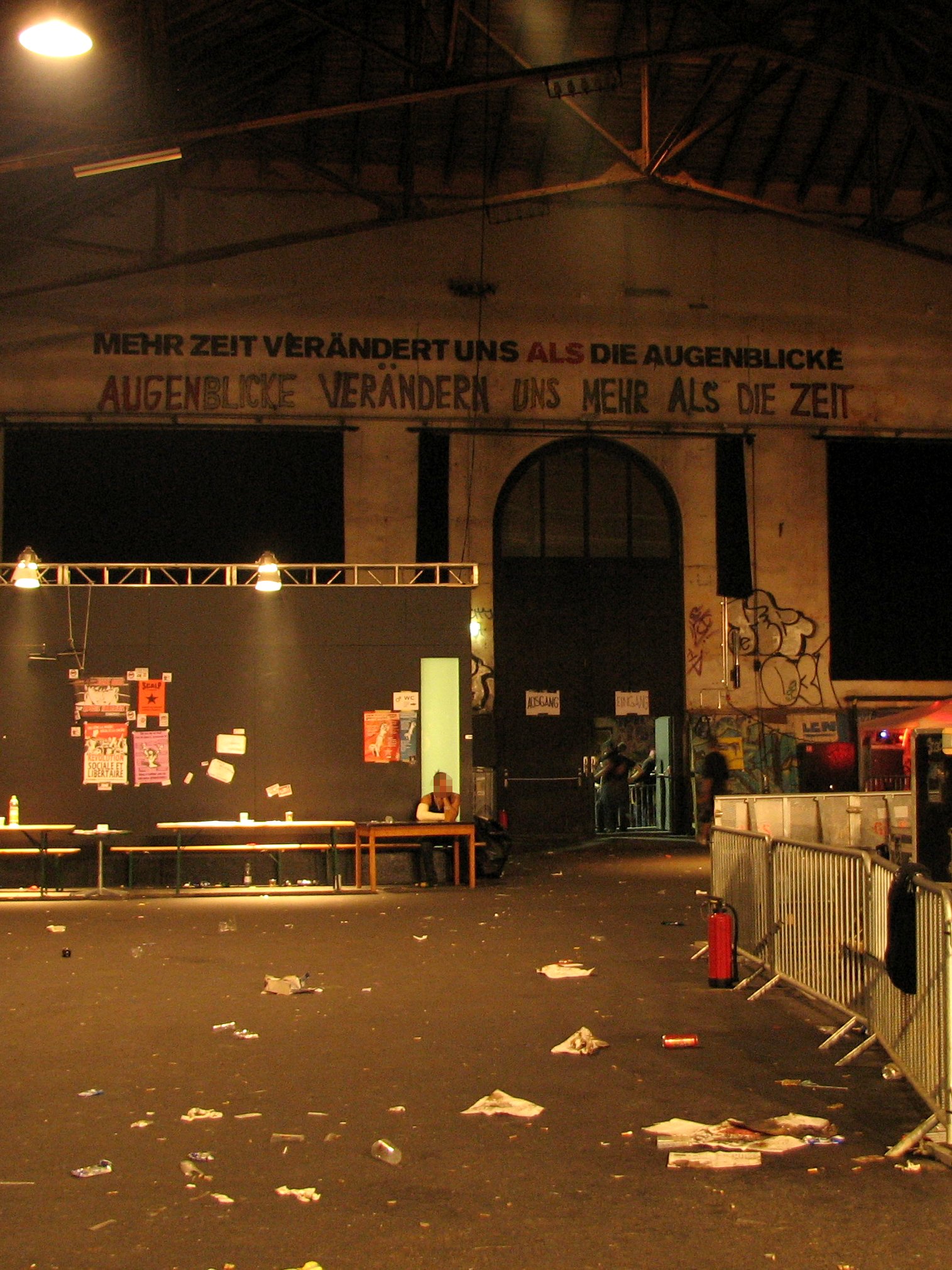 Als Reaktion auf den Brandanschlag wurde die Grosse Halle evakuiert und die weiteren Konzerte abgesagt. Dank der besonnenen Reaktion aller Beteiligten vor Ort verließen die BesucherInnen die Halle ohne Panik. Kurz darauf wurde die Feier auf dem Vorplatz der Reitschule fortgesetzt.