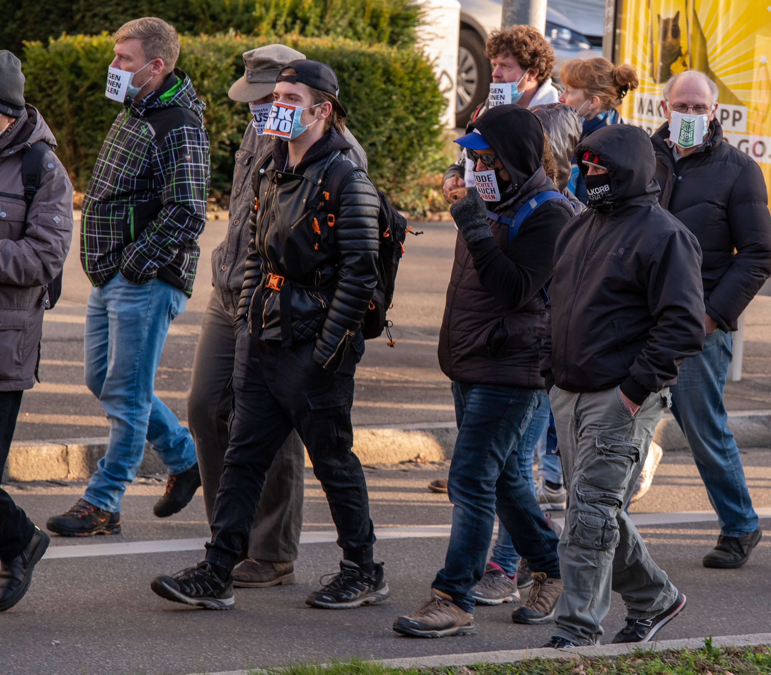 Bei einer 7-Tage-Inzidenz in Freiburg von fast 1.000 marschierten am 22. Januar 4.800 „Querdenker“ vom Fahnenbergplatz durch die Habsburgerstraße zum Komturplatz und durch die Komturstraße zurück. Allerdings hatten die „Querdenker“ ihre Route kurzfristig geändert und bogen von der Friedhofsstraße in die Tennenbacher Straße ab, um den Gegenprotest an der Uniklinik zu umlaufen, was aber nicht funktioniere, da die rund 2.000 GegendemonstrantInnen ihnen entgegenliefen und Spalier standen. Die Beteiligung sank gegenüber 5.000 ImpfgegnerInnen am 8. Januar und am 15. Januar leicht. Wieder liefen Nazis mit, darunter auch welche mit einschlägig antisemitischen „FCK NWO“ („New World Order“) Schildern auf ihrer Maske. Auch in anderen Städten in Deutschland gab es Aufmärsche und Gegenproteste, darunter in Baden-Württemberg in Pforzheim, Karlsruhe und Rastatt. Vor dem SWR-Gebäude in Stuttgart marschierten rund 1.000 „Querdenker auf. In Herrenberg im Kreis Böblingen gab es antifaschistische Gegenwehr anlässlich einer AfD-Kundgebung, auf der die AfD-Spitze ihre Corona-Hetze verbreitete. In Strasbourg haben Nazis auf die Fresse gekriegt, nach Brüssel kamen 50.000 samt Randale. In Freiburg zog abends noch eine kleinere Antifademo durch die Stadt.