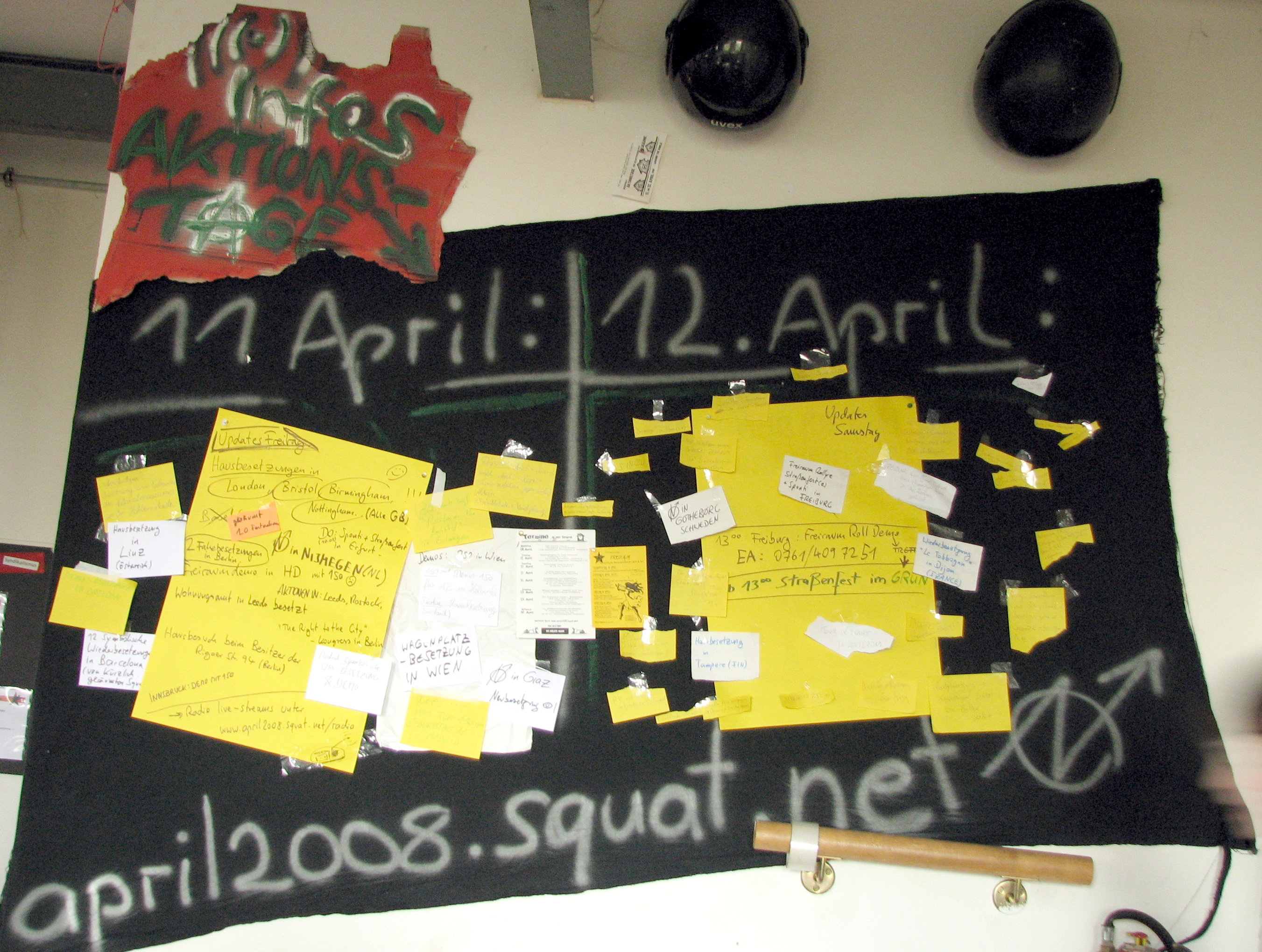 Am 11. und 12. April fanden in über 50 Städten Aktionen für mehr autonome Freiräume, besetzte Häuser, AZs und Wagenburgen statt. In vielen Städten gab es Straßenfeste, RTS-Partys, Scheinbesetzungen und Demos. Unter anderem wurden Häuser in Amsterdam, Nijmegen, Gøteborg, London, Milano, Barcelona, Dijon, Basel, Tampere, Turku, Wien, Linz, Graz, Bristol, Nottingham und Birmingham besetzt. In København, Wellington und Winterthur ging die Polizei brutal gegen AktionsteilnehmerInnen vor. Gemeinsam für mehr Autonomie kämpfen! See you in Berlin!