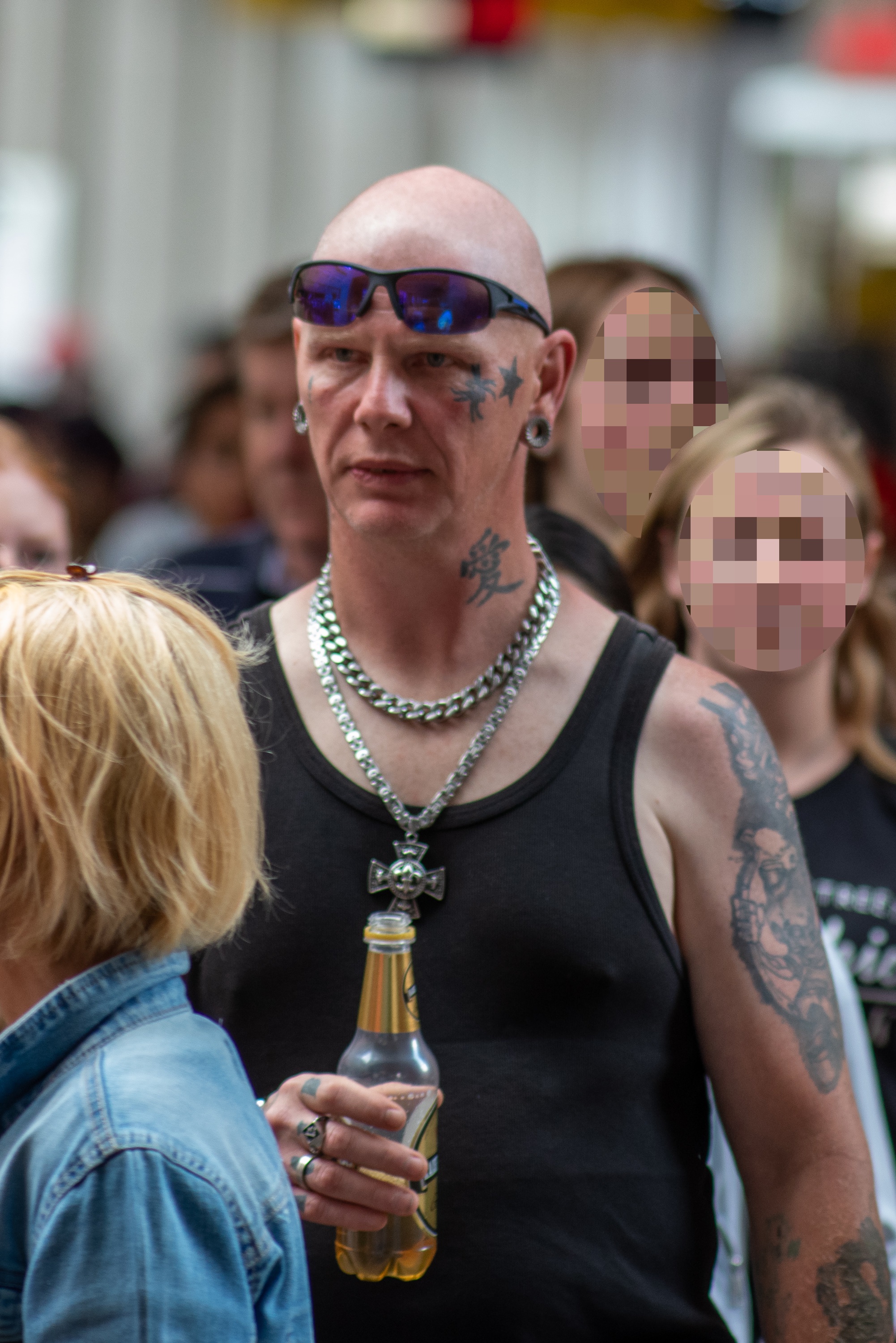 Rund 600 Linke aller Spektren demonstrierten am 25. Mai durch die Freiburger Innenstadt vom Hauptbahnhof zum Platz der Alten Synagoge, weiter zum Bertoldsbrunnen und bis hinaus zum Knast im Institutsviertel. Aufgerufen hatte das Freiburger Bündnis gegen Polizeigesetze im Rahmen der landesweiten Kampagne gegen die zunehmenden Befugnisse der Bullen und die immer stärkere Überwachung. Am Rande der Demonstration provozierten zwei betrunkene Nazis, die von den Bullen abgedrängt wurden: Kai-Uwe von Kraus (geb. Wagner), der durch sein Spinnentattoo leicht wiedererkennbar ist, und ein Nazi im Poloshirt.