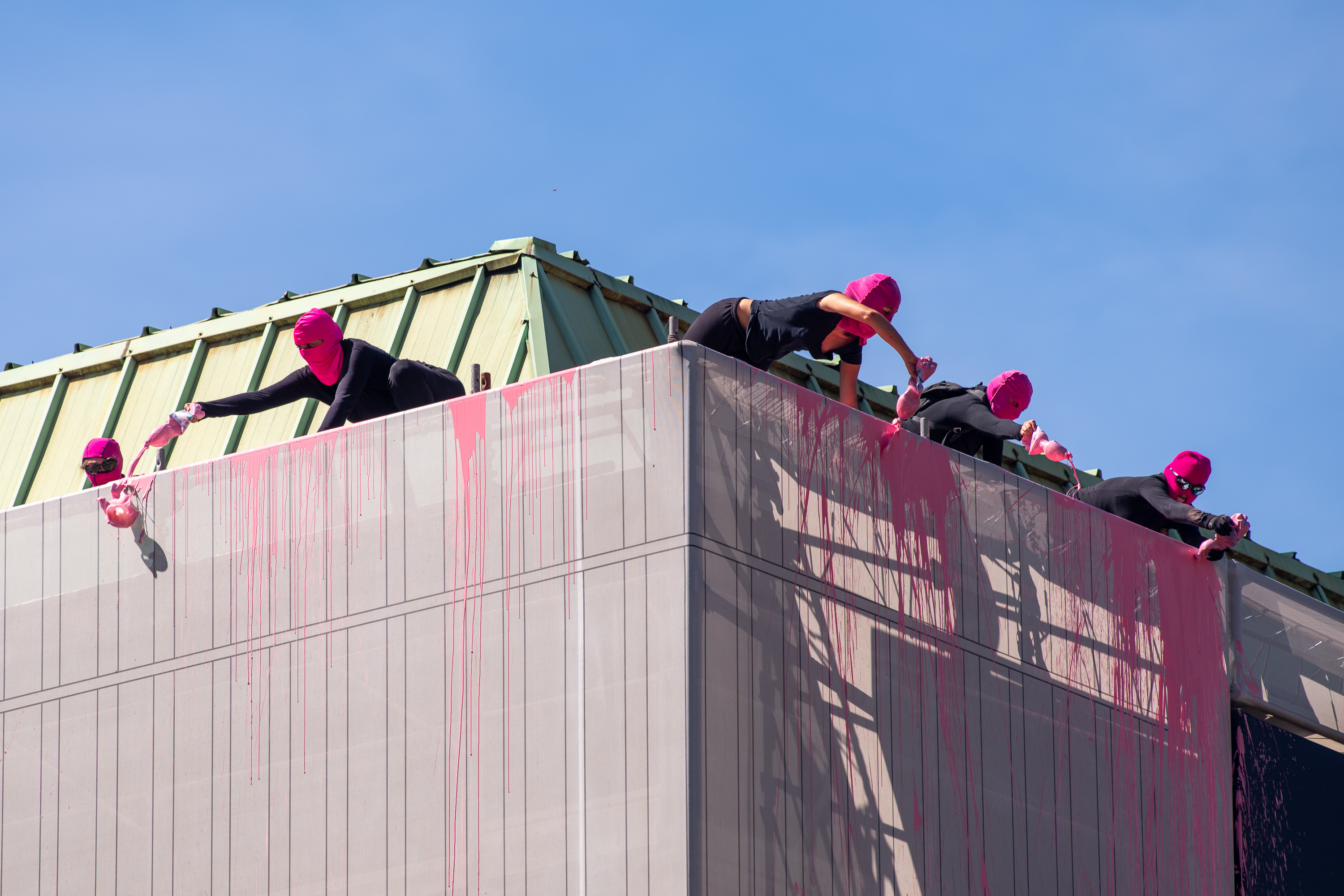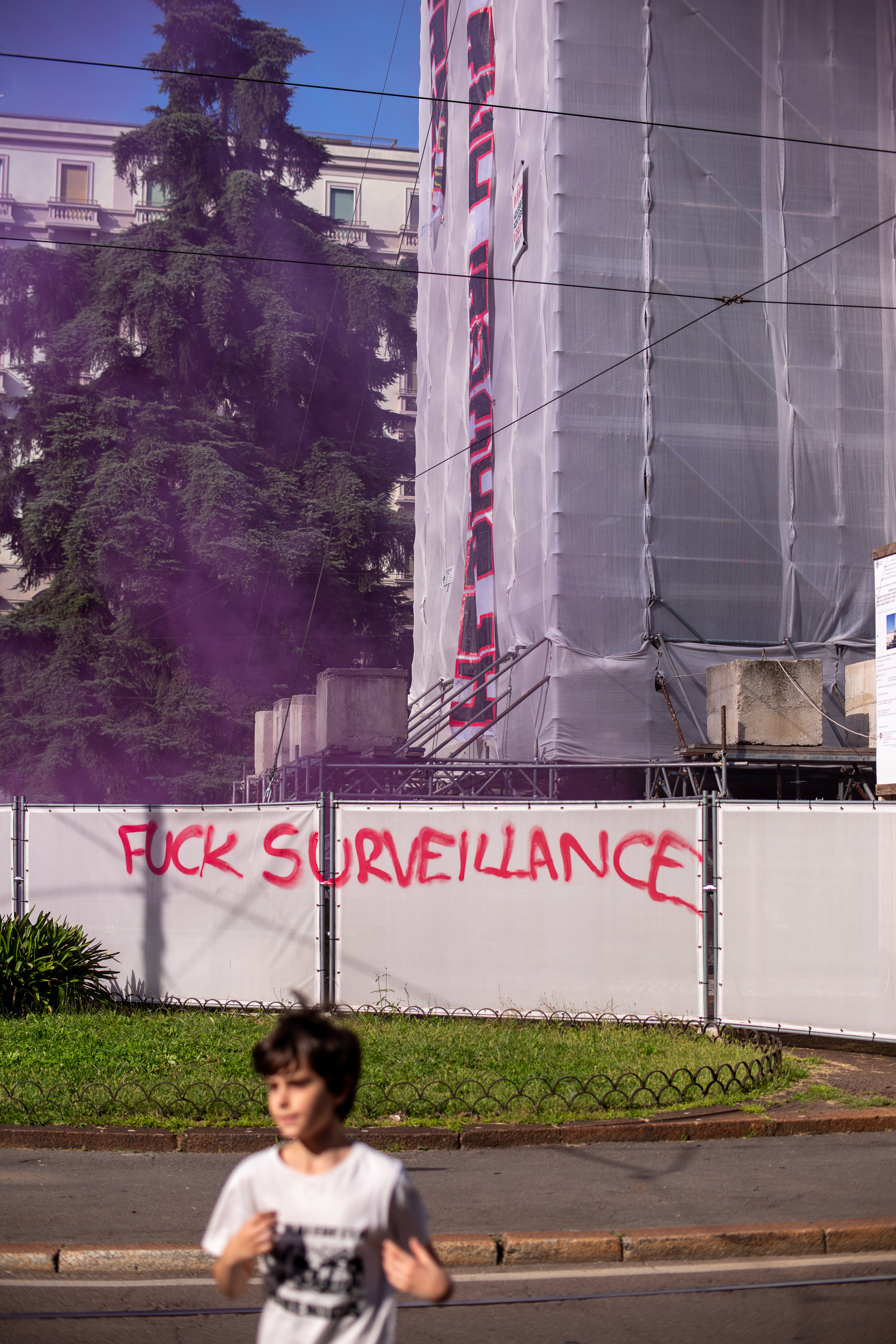 Auf Bannern an der Hochhaus-Baustelle war zu lesen: „Occupare è giusto“ („Besetzen ist berechtigt“) und „Contro la città dei padroni“ („Gegen die Stadt der Besitzenden“). Die Baustelle war anschließend pink und es wurde entlang der Route ohne Probleme viel gesprayt.